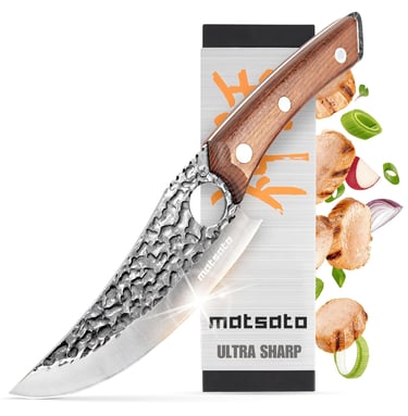 Matsato chef’s knife features a precision, laser-carved index finger hole for superior control. The blade is composed of high quality stainless steel ensuring a sharp, quality knife for the years to come. Premium beech wood handle is probably the most comfortable and secure handle ever created.
